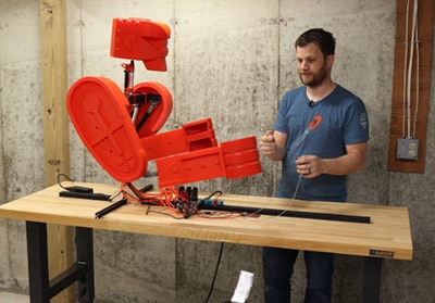 3D printed parts help to position the solenoids so that they are perfectly centered above the keys and have enough height to strike the keys. The entire assembly slides over the xylophone so it can return to its non-robotic form easily.