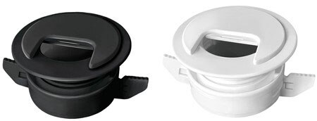 The JBL Products self-locking wire and cable management grommets are great for use in walls, ceilings, floors, computer workstation desk tops, entertainment centers, and endless other applications. This unique grommet requires no tools once the surface opening is made. Wires/cables can be passed through the grommet before or after installation. Grommet wings are retracted and then activated for insertion into the surface. They are secured/locked into position by simply turning the pass through tube. Once the wires/cables are in position, the finishing cap may be placed on the tube. The grommet is reusable for future relocations. Grommet measurements are 1 3/4” long and 2 3/4” wide (outer surface rim). The wire/cable pass-through inner diameter is 1 1/2”. The mounting surface thickness is 3/8” to 1” with a hole saw bit size of 2 3/8” or use any sheetrock type hand saw.