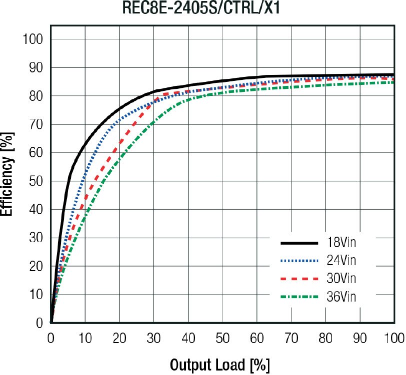 Die Serie REC8E von RECOM ist mit Eingangsoptionen von 12 VDC, 24 VDC und 48 VDC erhältlich, hat einen Eingangsspannungsbereich von 2:1, einen Wirkungsgrad von 85 % sowie eine Isolierung von 1,6kVDC/60 Sek. Sie hat einen Kurzschluss- und Überstromschutz mit internationalen Zertifizierungen und verfügt über einen EIN/AUS-Steuerungspin.
