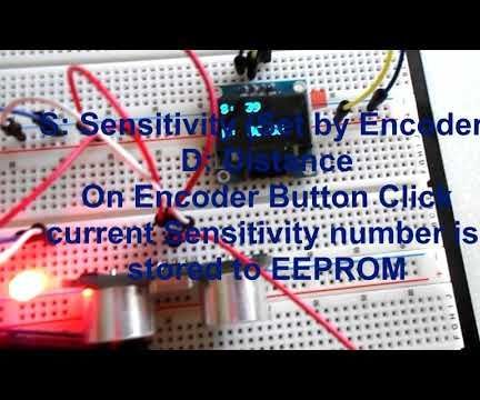 Arduino Ultrasonic Range Finder, OLED, Rotary Encoder and Saving Setting