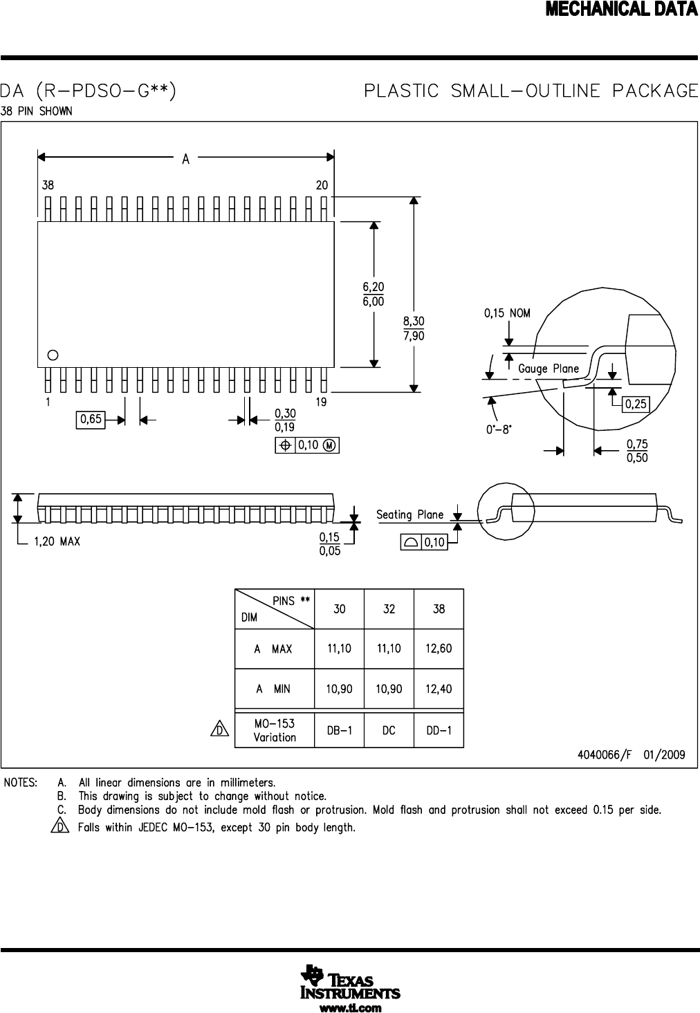 C. Body dimensions do not inciude mold flash or protrusion Moid flash and pm‘rusion shali n01 exceed 0.15 per side.