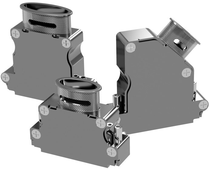 Les capots arrière en aluminium séries AP/AK/AW d'Amphenol Positronic ont une entrée elliptique à bandes