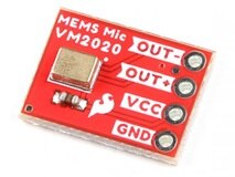 The SparkFun Analog MEMS Microphone Breakout makes it easy to work with the Vesper VM2020 analog microphone. The VM2020 is an ultra-high Acoustic Overload Point (AOP), high dynamic range, differential analog output piezoelectric MEMS microphone.