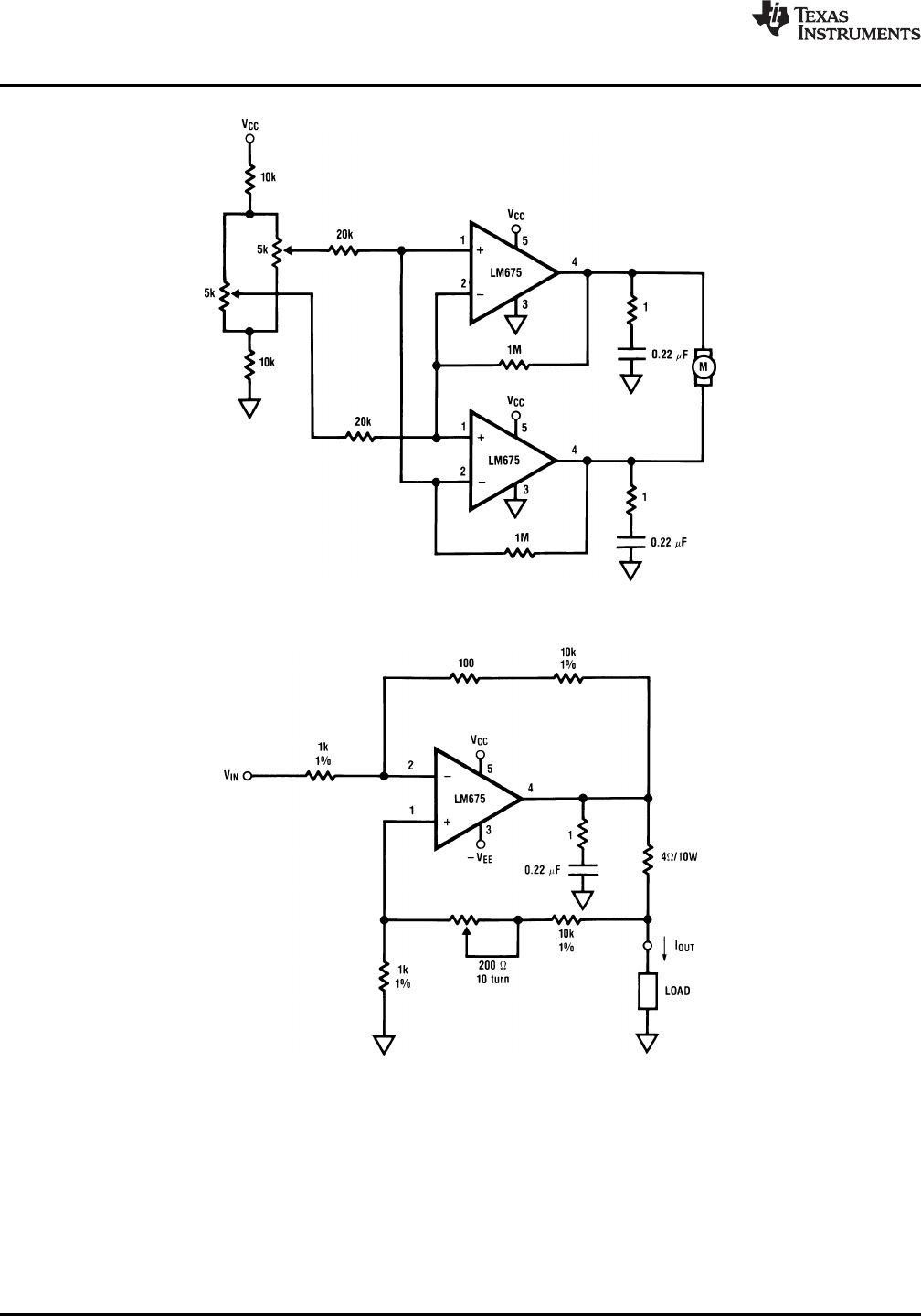 high-current amplifier, the LM675 can be made to oscillate under certain conditions. These usually involve