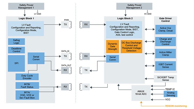 - Il setpoint ISEN/COMP programmabile tramite SPI consente al gate driver di controllare automaticamente la forza di pilotaggio del gate in base all'ingresso del dominio di alta tensione.
